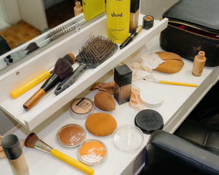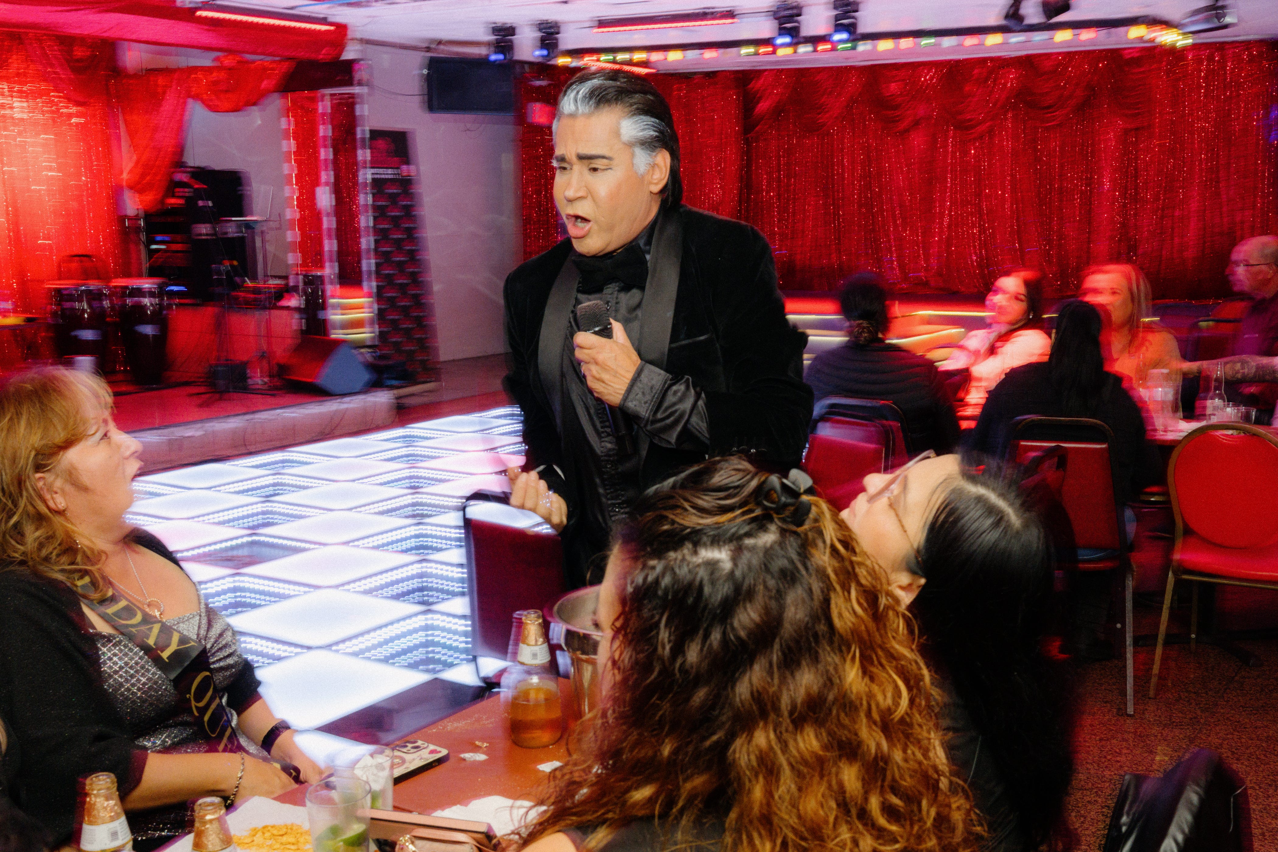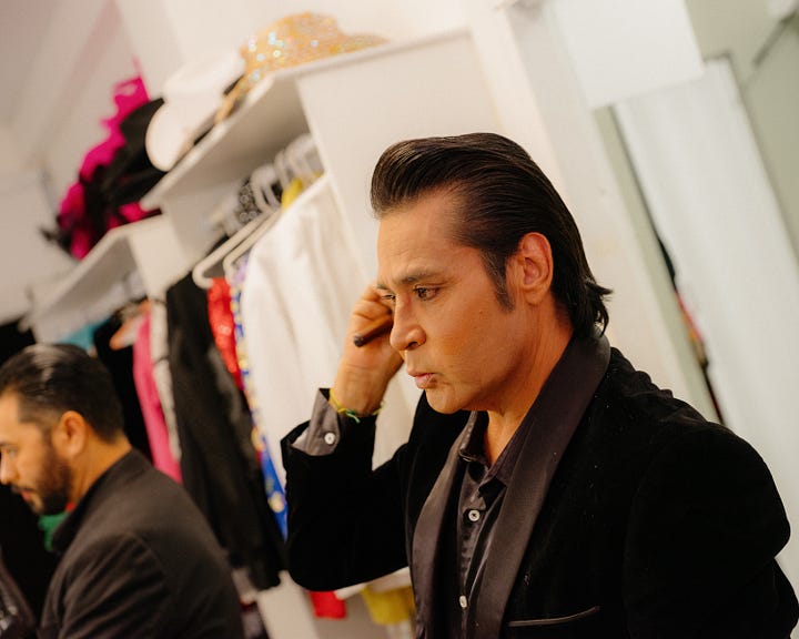 “One day I went to a club and I saw that they performed very nicely and I said, “Oh, I love the way they work.” She taught me since I didn't have any experience. Another friend, Mara, brought me to Los Candiles. I learned everything working here. I used to perform only as Juan Gabriel but little by little I started [working with different looks] because we do makeup and we have to look like the artist. So after that I did Vicente Fernández. I do all the Mexican singers.”